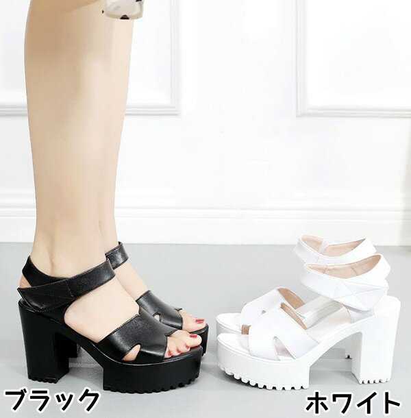 送料無料 サンダル 厚底 チャンキーヒール サンダル 厚底 太ヒール ストラップサンダル ハイヒール ベルト オープントゥ ブラック ホワイト つっかけ ヒール 6cm 8cm 10cm 可愛い 疲れにくい カジュアル コンフォートサンダル チャンキーヒール 小さサイズ 大きいサイズ