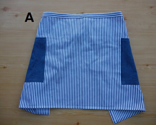 【ハンドメイド】カフェエプロン ストライプ&デニム 2タイプ保育園 幼稚園 小学校 参観日 調理 国産